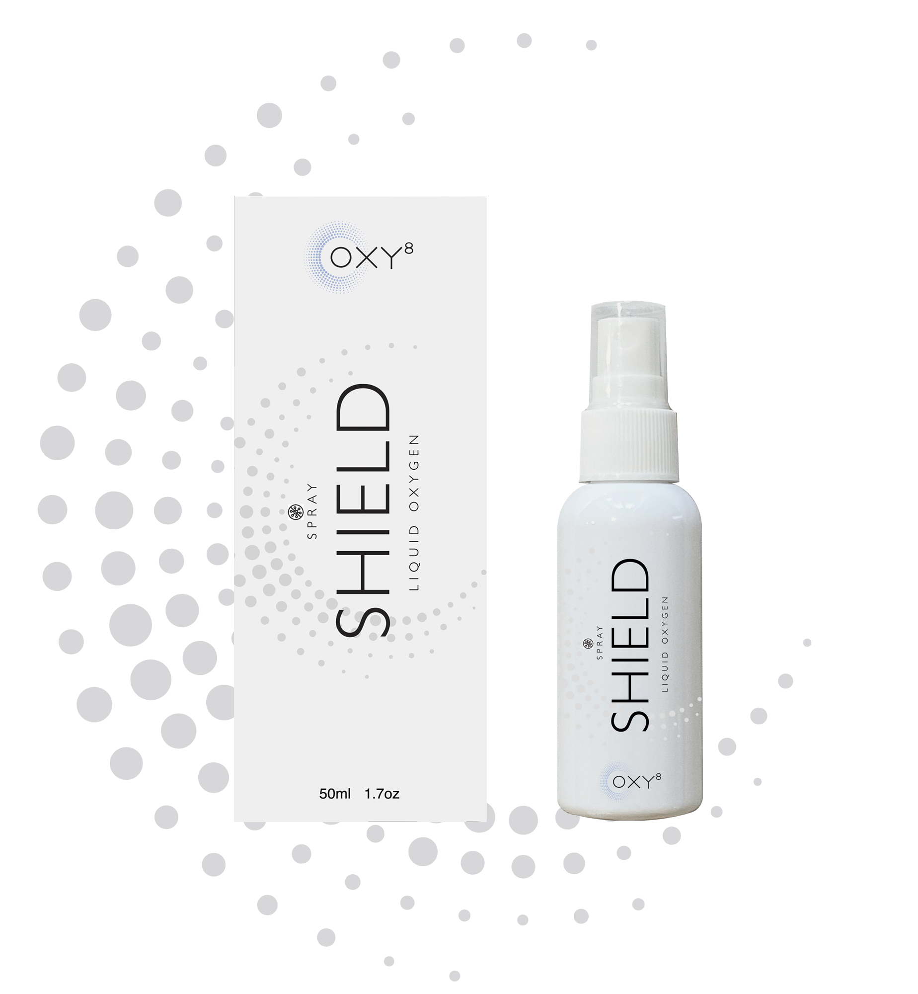 Oxy8 Shield is an unpressurized spray that is composed of liquid oxygen, pure water and 100% natural elements.